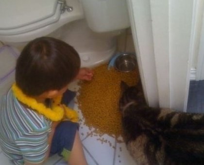 귀여운 악동에게도 고양이 밥을 먹이지 말것!