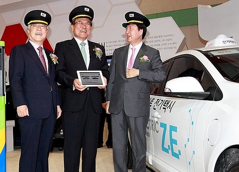 이석채 회장은 KT의 특허기술인 SMCT(Space Mobility Communication Technology)와 전기충전 인프라 시스템을 활용한 전기 택시 관제 서비스인 'olleh 스마트 전기택시'에 대한 설명을 들으면서