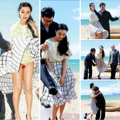 이거 판빙빙 맨첨에 치마 다 까져서 놀랜 사진도 있음 얼마나 놀랬을까잉