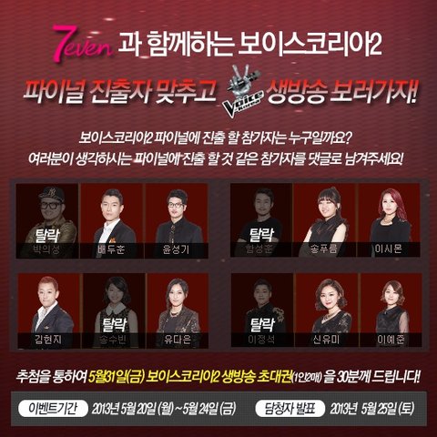 파이널 참가자 맞추면 생방송티켓을 주는 이벤트에요