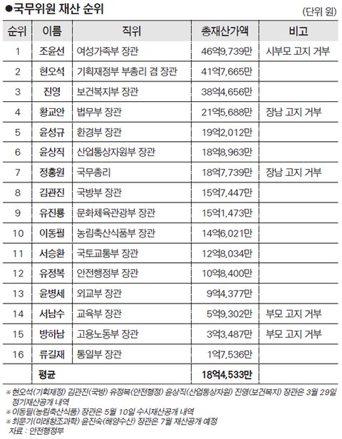 정 총리 등 8명, 직계존비속 재산 공개 거부