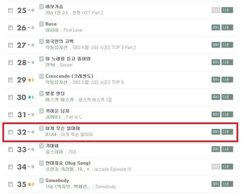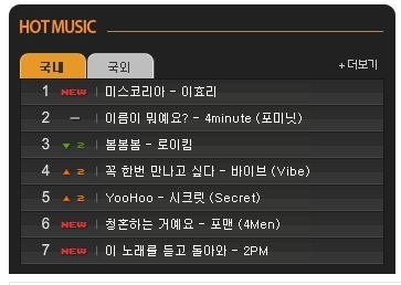 첫번째가 가온차트구요,두번째가 싸이월드뮤직 차트입니다