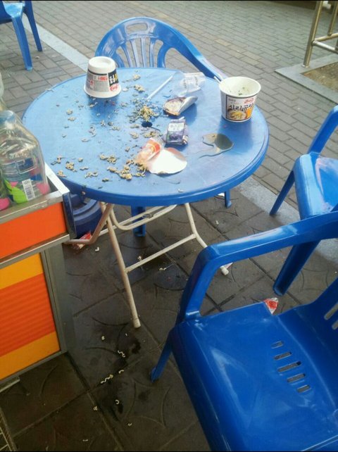 삼심분넘게 편의점을 방황하다가 드디어나가길래 드디어가네ㅡㅡ하며 라면먹는식탁에 가보니 가관아님