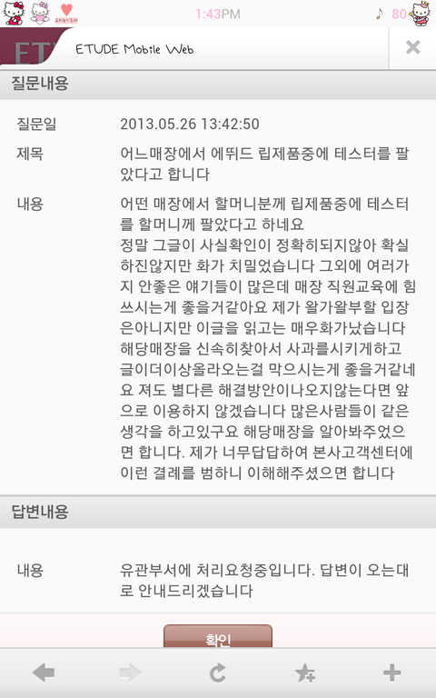에뛰드 할머니께 테스터 판거 문의에 올렸습니다+답변추가