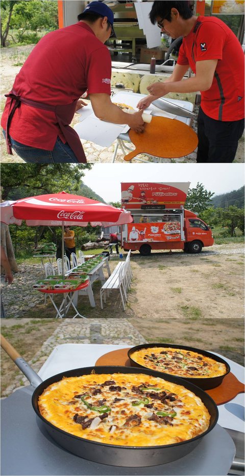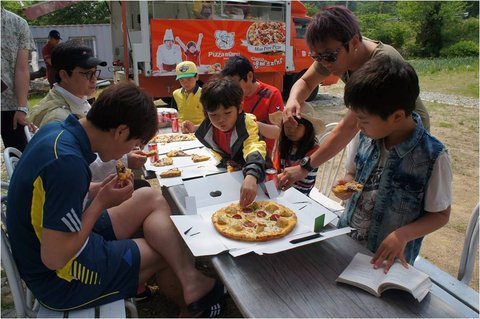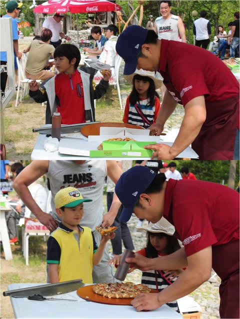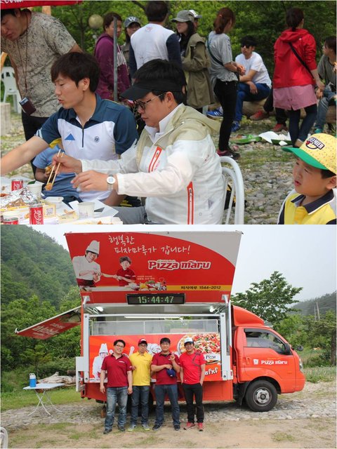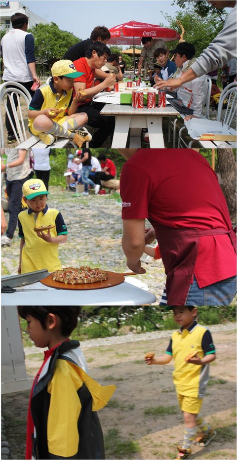 아빠어디가 촬영장에 피자마루 피자파티 중