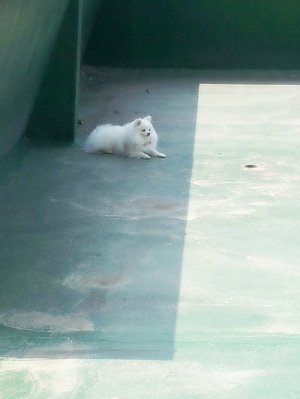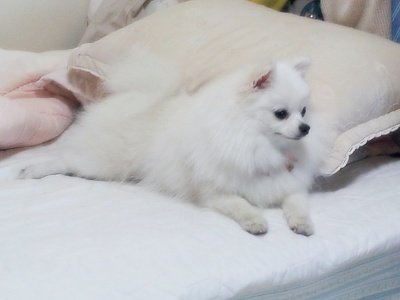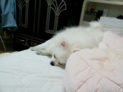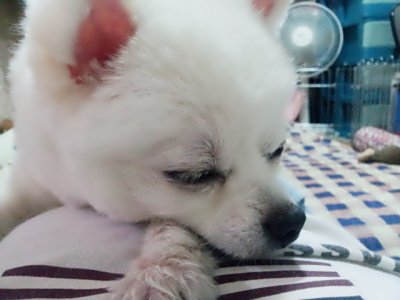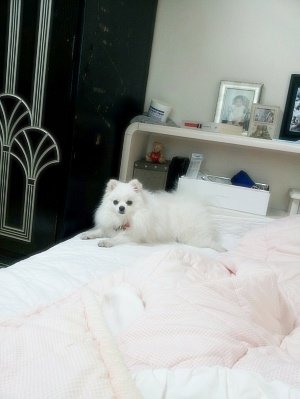 산책을 마치고~깨끗이 샤워를 하고 피곤해 하는 깡총구름양!!