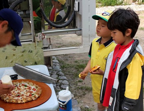 요리사 아저씨가 오셔서 직접 현장에서 만들어 주시는데 젤 신나 보이는 사람은