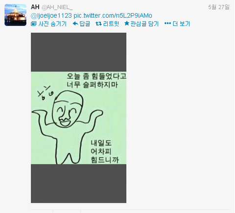 엔젤(틴탑팬클럽)의 모니터남친 엘조가 다정한 트윗을 남김