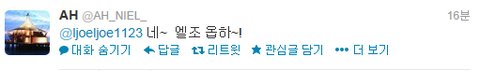평소 니엘 트윗을 보면 알겠지만 니엘이는 엘조에게 굉장히 단호박먹은 답멘을 날리는 멤버임.