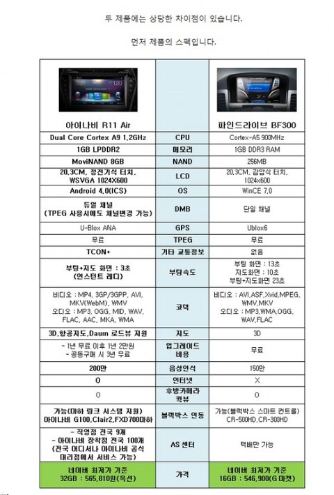 파인드라이브랑 아이나비랑 비교 잘해놨더라구요