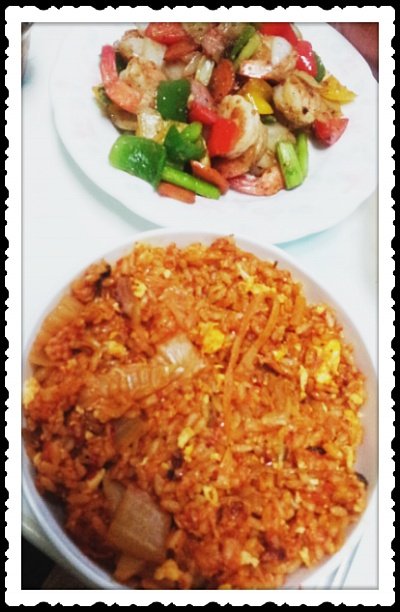 내가 좋아하는 새우!! 이번에는 햄이랑 같이 야채 넣고 볶았어요 ㅎㅎㅎ