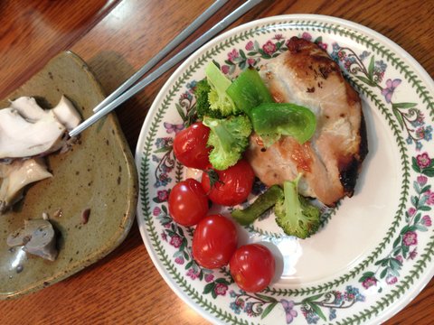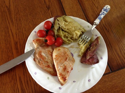 토마토 구이, 닭가슴살 구이, 그리고 고구마~