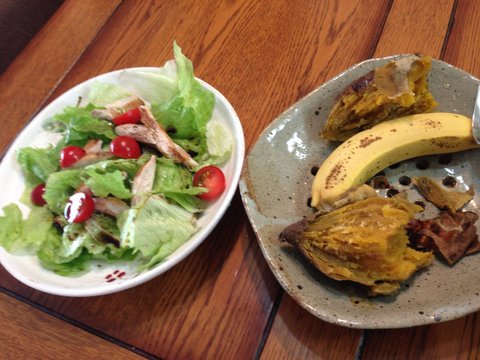 풀때기들과 고구마 바나나입니다 물론 저 고구마 한쪽만 먹어줘야겠죠