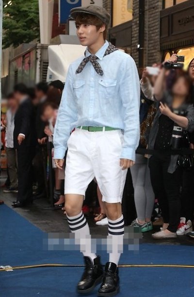 반바지 속에 넣어 입은 셔츠와 셔츠 카라에 맨 짧은 스카프랑 빵모자, 그리고 반스타킹까지ㅋㅋ
