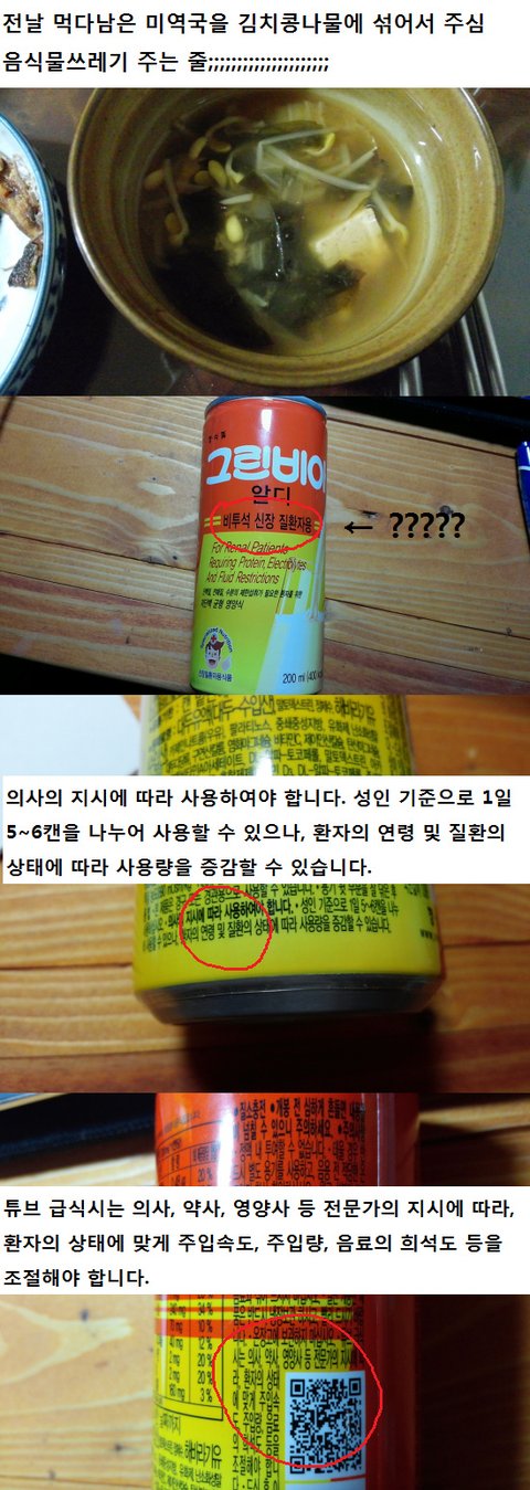 저 음료수 병원에서 입으로 식사 못하는 환자들 먹으라고 주는건데;; 우리 외할아버지도 입원하셨을때 콧줄연결해서 밥 대신 저거 드셨어요 약국이나 의료기기파는 가게에서 파는데 무슨 손님이 선물로 사와요 말도안되는 소리를ㅡㅡ 그리고 제가 저거 먹어봤는데 완전 맛없어요