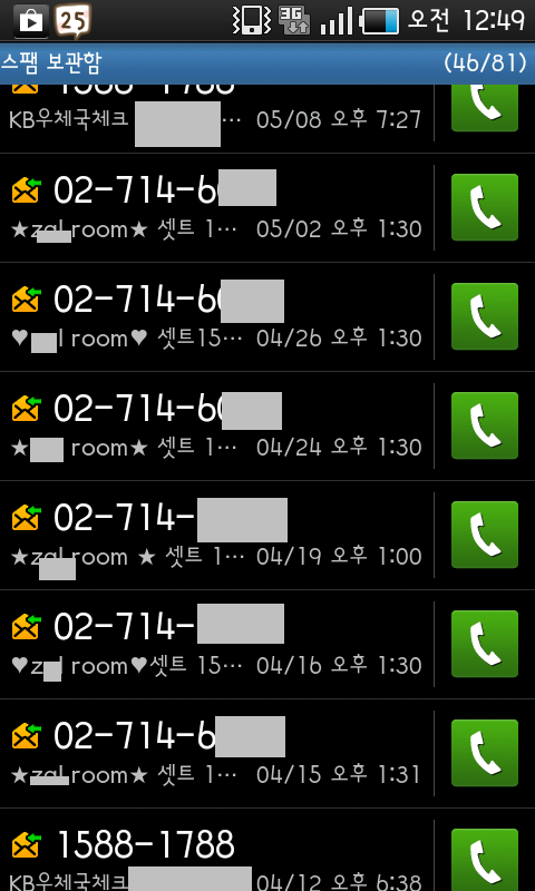 혹시나해서 봤더니 스팸문자함에 참 꾸준히도 보내왔더군요 아주 2-3일에 한번꼴로요 두달동안을요