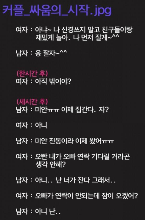 솔직한 말로;여자라서 여자가 이해됨..ㅠㅠ 잔다고 했어도 못해도 한시간에 한번은 나 이제 자리 옮겨. 오늘 좀 늦어지네 잘자고있어? 나 들어왔어 이런거 카톡 오길 바람;; 사람들하고 노는 사이에도 날 생각해줬으면 하는 생각이 있는거임.. 하지만 솔직해지면 편함; 나같은경우 남자친구가 친구 만나기 전까지 통화 하고 재밌게 놀라면서 연락 끊음 그럼 가끔 내가 뭘 물어봐야 하는 상황이 되면 연락 함 그게 아니면 나도 내 친구들이랑 있을때 얼마나 폰에 신경이 무뎌지는지 알기땜에 딴짓하며 놀고있음; 하지만 내 남친은 간간히 내가 생각나면 남친이 먼저 뭐하냐고 물을때도 있고 나 또한 시간이 길어진다 싶으면 얼마나 마셨는지 주량 체크겸 연락 해봄 더 마실거라 그러면 이미 술 마셨으니 적당히 조절하며 마시라고 하곤 또 연락을 끊음 지금 생각해보니 남친이 먼저 나 이제 친구 만났다 나 2차로 간단히 맥주하러 간다 뭐하냐 등등 먼저 연락하고 날 생각하는게 보이기때문에 나 또한 크게 터치하고싶지 않아지는거 같음.. 남친이 알아서 잘 하는것도 있고 친구랑 놀더라도 간간히 내 생각 하는게 보이기땜에;; 이건 여자도 보고싶거나 목소리 듣고싶거나 연락 하고싶으면 솔직하게 이야기 하는게 좋고 남자도 친구랑 노는중에도 여자친구 생각나면 행동으로 옮겨서 잘자느냐 어디 간다 이야기 하는게 좋은거 같음.. 뭐.. 여친 생각 안난다믄 할말 없고;; 내 남친같은 남자가 흔친 않으니깐 ╋_╋ 그리고 나는 왠만하면 남친이 들어갈때까지 잘 안잠.. 남친이 늦어도 2시 전엔 마무리 하는것도 있지만 남친이 걱정됨. 술을 먹었으니 당연한것.. 가끔 너무 늦어지는 자리는 버티다 버티다 못견디겠다며 먼저 잔다고 함.. 그럼 남친은 집에 들어가서 카톡해놓고 잠.. 자고있나? 나 들어왔다 너무 늦어서 미안하다 내일 아침에 만나 사랑해 대충 이런식으로.. 그러니 미워할 수가 있나 ╋_╋ ♥