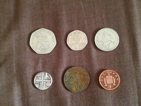 사실 영국의 화폐들은 지폐고 동전이고 그 금액의 크기와  상관없이 모두 다 여왕의 얼굴이 새겨져있기때문에 한쪽 면만으로는 구별하기가 대단히 힘든게 사실이에요.