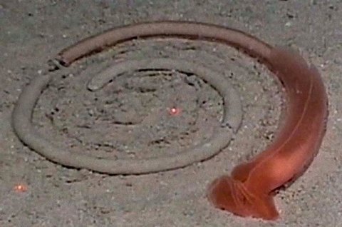 뱀 같이 가늘고 긴 생물로, 그 생물이 발견된 주변 해저에는