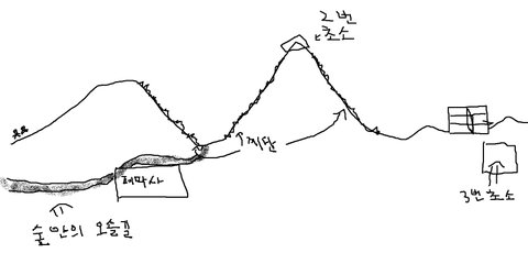나는 나와 같이 인솔조장을 하고 있던 동기들에게 초소에 빨리 갈수 있는 길이 있는줄 물어봤었는데 나보다 저 초소 인솔을 했던 동기들이 저 오솔길을 말해줌