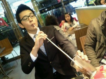 정장입고 저러고 있음....ㅋㅋㅋㅋ 맥도날드에서 촬영한것인데 빨대를 4개를 이어서 콜라를 먹음