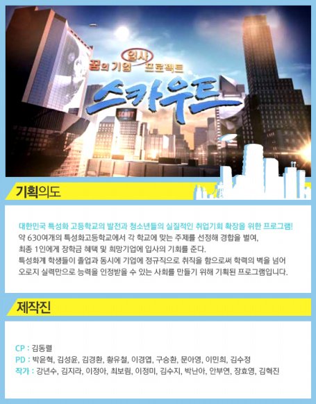 나는 KBS TV1 "스카우트"라는 프로그램에 출현할수있는 기회가 주어짐 (아싸 글자색 돌아왔다)