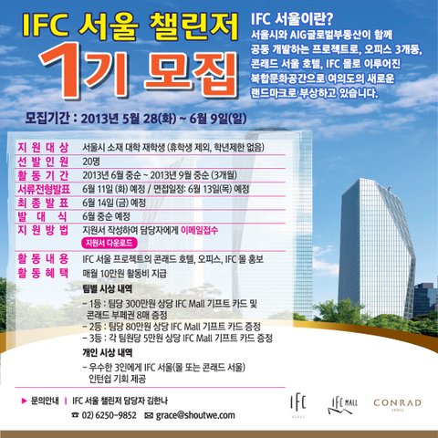 ‘IFC 서울 챌린저’ 1기를 모집합니다!