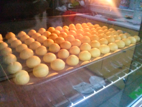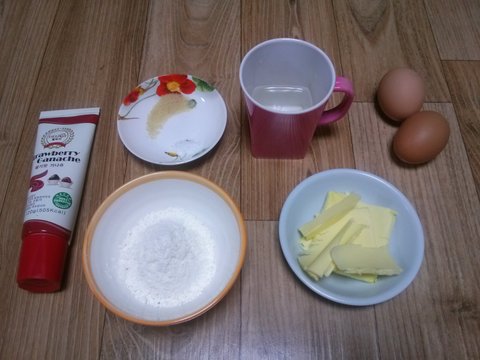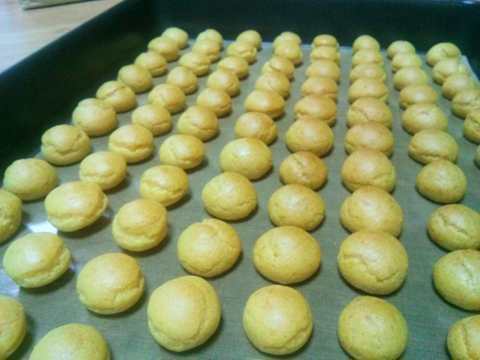 슈:물 100g, 버터 50g, 박력분50g, 설탕1g, 소금1g, 계란 2개 (홈런볼크기 약80개 분량)