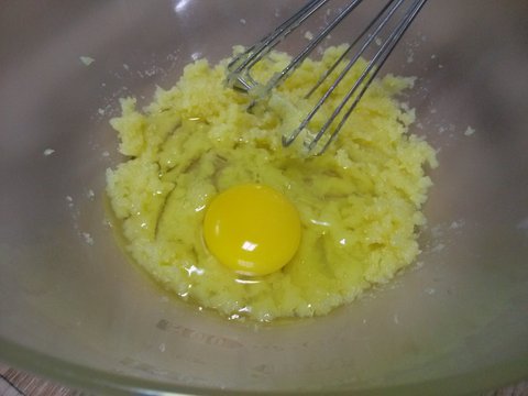 반죽이 식으면 계란을 하나씩 넣고 잘 섞어주세요~