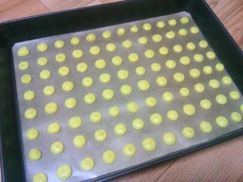 오븐팬에 간격을 어느정도 두어 짜주세요!