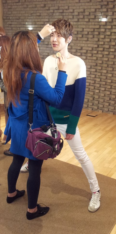 메이크업 아티스트를 위해 키높이를 맞춰주는 한뵬 +_