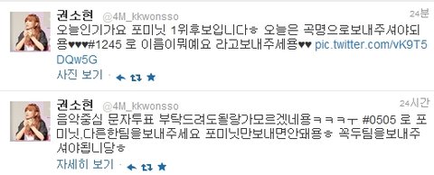 진심 저런거 보면 투표 하기싫어짐;; 1위하고싶어서 저렇게 구걸 하는거 보면 나 첨엔 협박하는거 같았음...