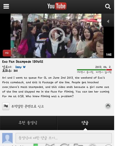 영상링크고 거기에 영상찍은 외국인 투애니원팬이 쓴글
