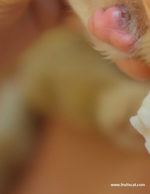 유봉이의 상습 상처~ 앞발젤리에 구멍이 나는 병인데... 정확한 원인은 유봉이 젤리가 민감해서