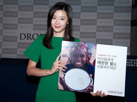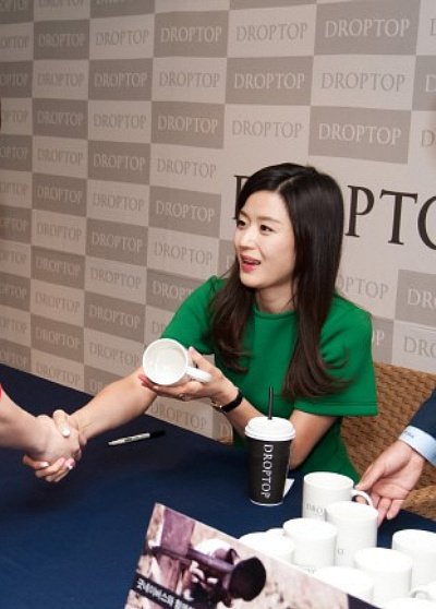 웬만하면 소화하기 힘든 색상이라 피하기 십상인 초록색 원피스를 입은 전지현