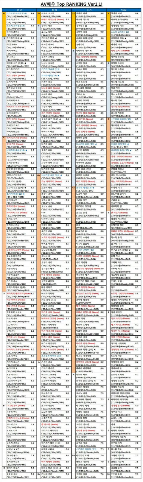 (엽기) 디씨 어느갤의 AV배우 랭킹