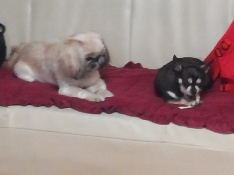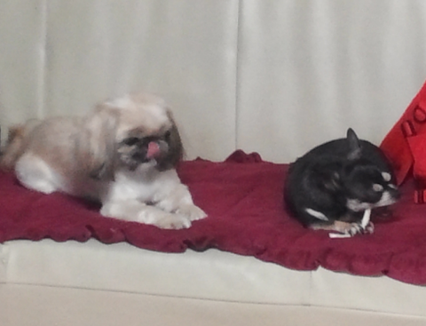이름은 라사압소종인 아이는 뚱이고 블랙탄치와와종인아이는 까미에요 .. 우리애들을 만난건 작년 부처님오신날에 유기견보호소에서 랍니다 ~ 뚱이랑까미란 이름도 그곳직원분들이 임시로 지어서 부르고 계시더라구요..ㅎㅎ 그곳에 도착하자마자 눈에들어온녀석이 뚱이였어요~ㅎㅎ 낮가리지않고 이사