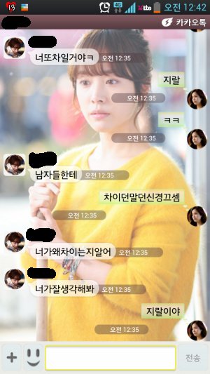 욕하더라고욬ㅋㅋㅋ 신발년아 남자생겻냐?ㅋ 완전배신자년인데 꽃뱀 이라그러고