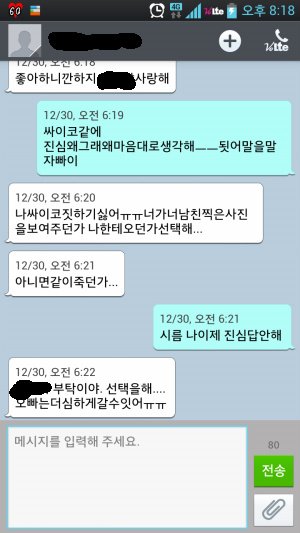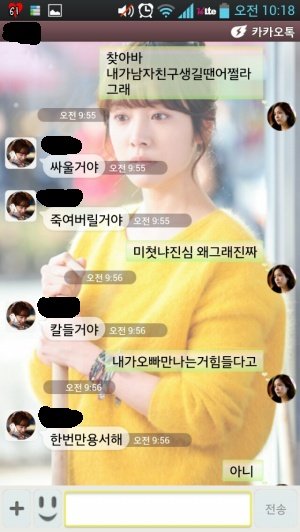 "욕하지말아줫음 좋겟다구 기분나쁘다고" 라고 말을하면 "우리애기 화낫어?미안해 오빠가 안아줄께^^"이러더니 신발년아 ㅋㅋㅋㅋㅋ싫은데 ㅋㅋ "아 하지말라고!!!!"화내면 미안해 이러고