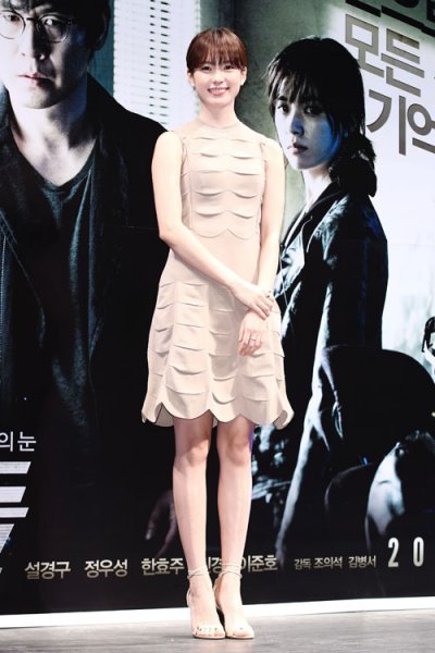 머리 기르는 중인지 애매한 머리 걍 묶어 버리고 스킨톤 원피스 입은 한효주