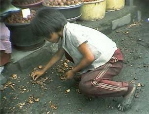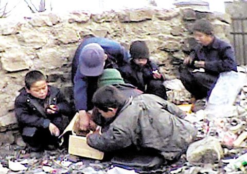 음식물 뒤지는 꽃제비...