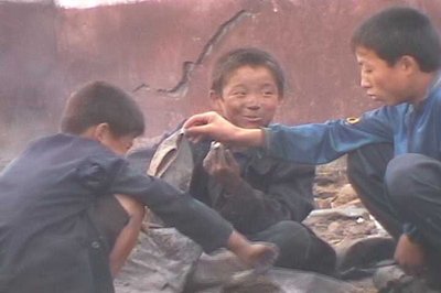 얼굴이 시커먼스처럼 탄 꽃제비... 얼굴을 안 씻어서가 아니라......