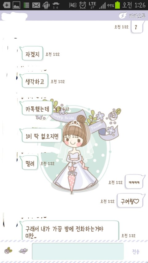 1시쯤 자기 잔다는 카톡이 와서 바로 답장했더니
