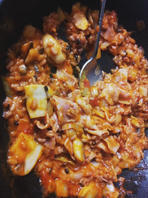 처음에 양파,양송이볶으면서 후추랑소금으로 간맞추고 그담에 소스를넣고