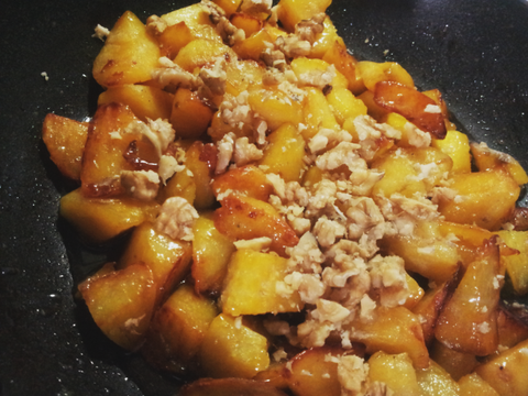 먼저 식용유적당량을 붓고 고구마먼저 노릇노릇하게 익을때까지 익혀줌