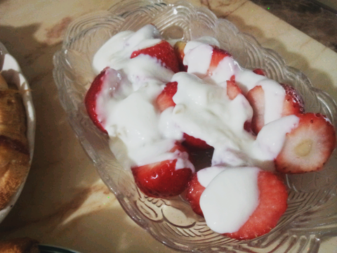 이건 디저트로 딸기 반토막씩잘라서 위에 요플레 쓰윽부려주면 끝