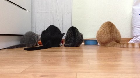 네마리가 나란히 밥먹고있어요 ㅋㅋ