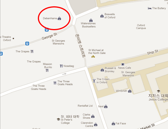 옥스포드 버스회사 주소는 Debenhams (3rd Floor) Magdalen Street, Oxford 구요,
