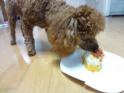 촛불을 끄자마자 얼른 달라고 난리란 난리를 쳐서 얼른 주었더니 허겁지겁