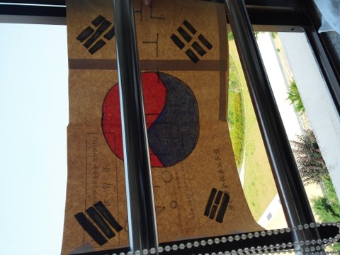 소박하지만 마카펜과 종이봉투를 잘라 조금은 모자란 태극기를 만들어 달아봤습니다.